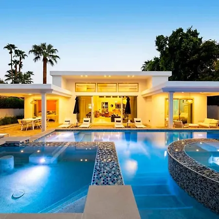 De Moorten Botanical Garden and Cactarium is op slechts 1 km ervandaan gesitueerd. De 4-badkamer villa biedt ook gemakkelijke toegang tot Palm Springs Presbyterian Church, binnen 5 minuten wandelen ervandaan.
